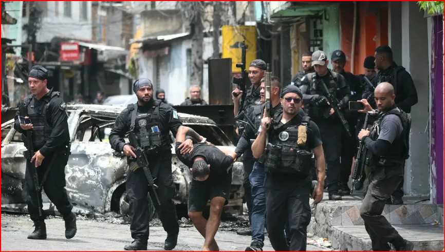 ब्राजील के रियो डी जेनेरियो में 'रेड कमांड गैंग' के खिलाफ सैन्य क...